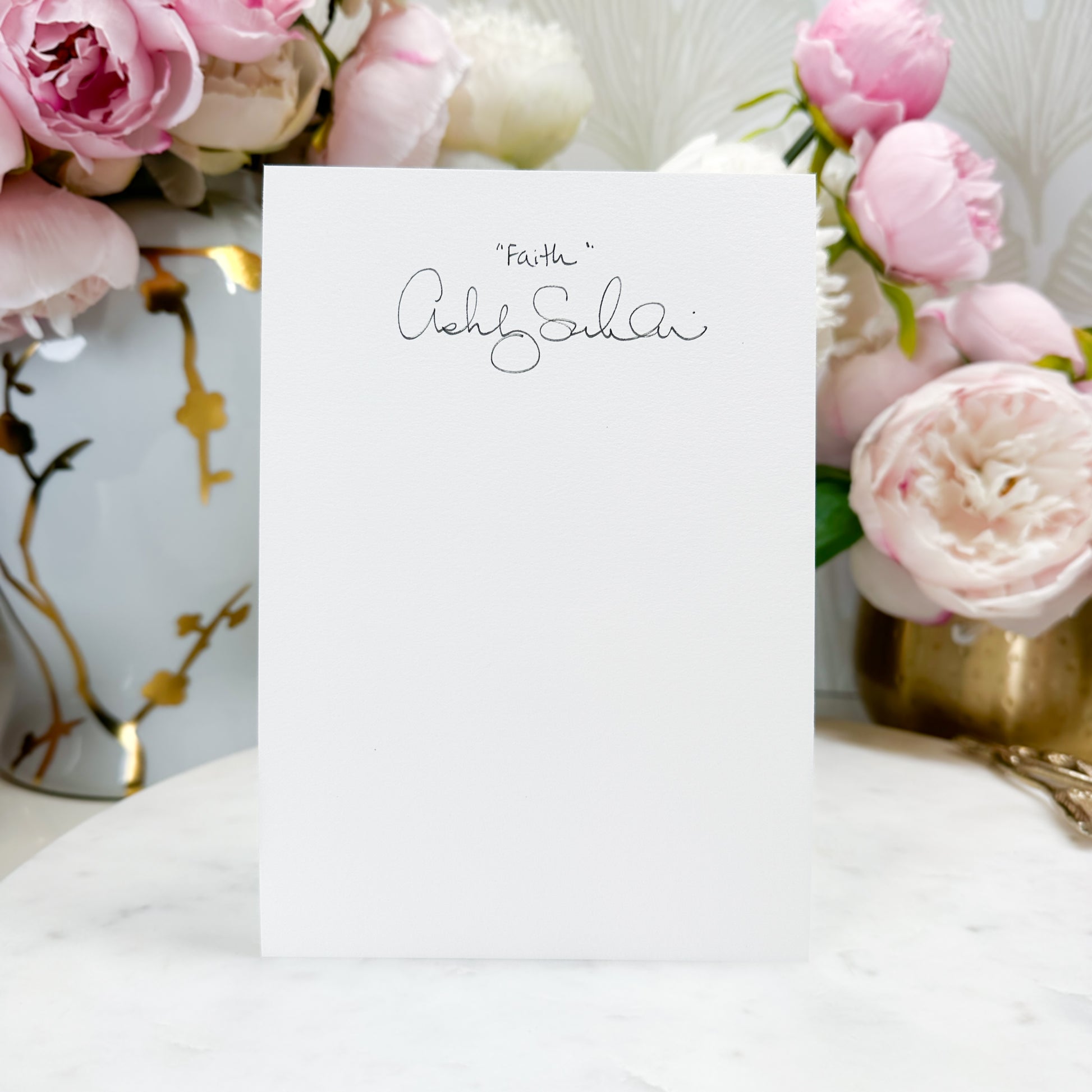Archival fine art print from an original acrylic painting by Ashley Salvatori. Printed on premium fine art paper for a timeless, vibrant finish designed to last 200 years with proper care. Each "Faith" angel is individually signed in gold on the front and includes a title on the back.